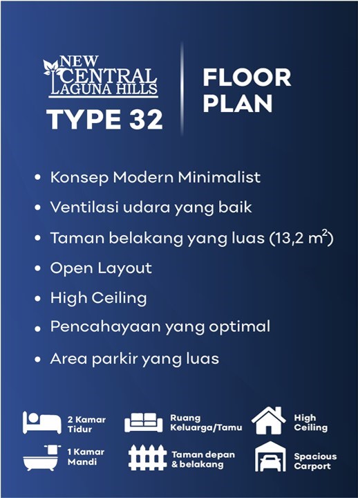 Type 32 Miliki desain Modern Minimalist dengan pengunaan warna natural dan paduan fasad bermotif kayu membuat tampilan rumah terlihat mewah dan menarik. Hubungi KamiDapatkan Promo dan Penawaran Menarik dengan mengisi Form dibawah ini: